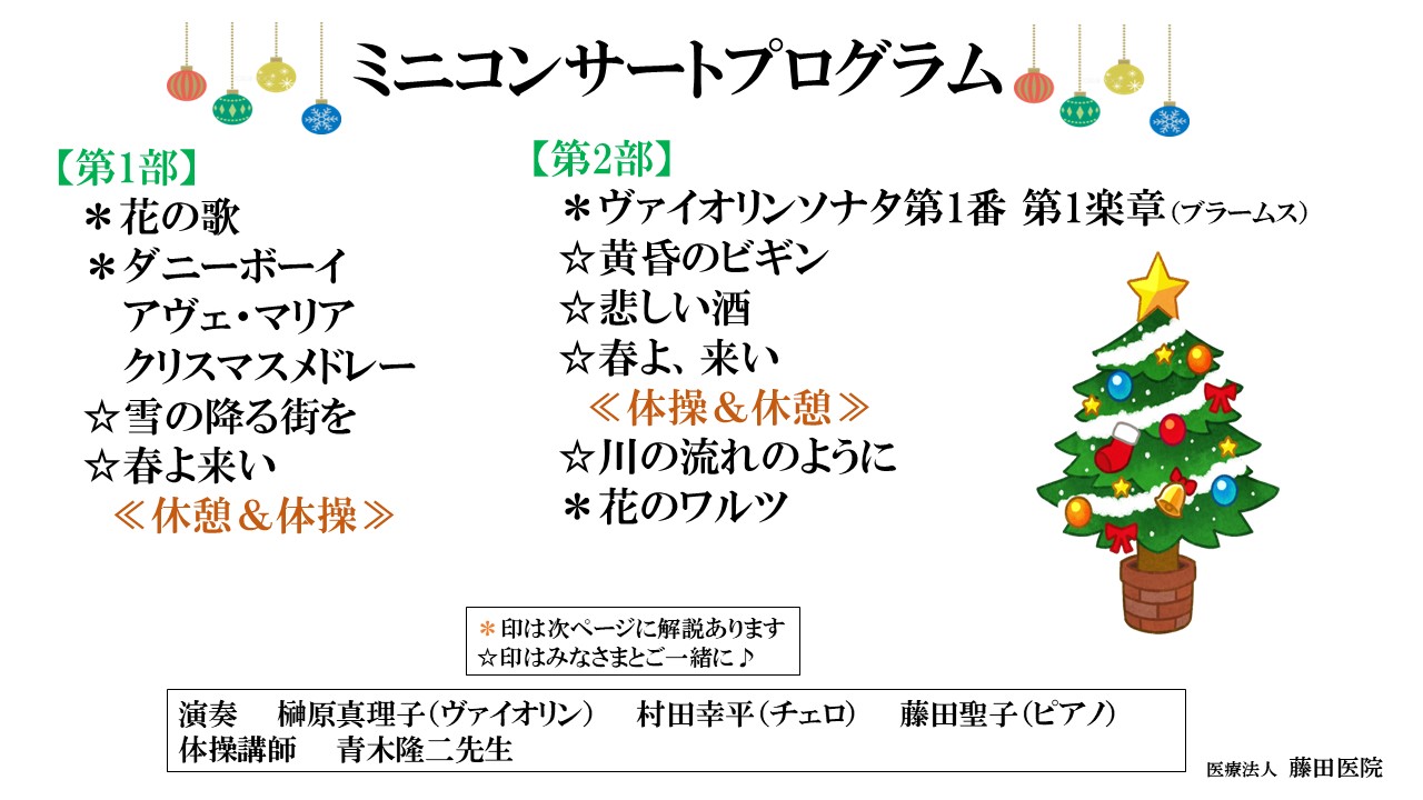 第29回健康教室&ミニコンサートを無事終えることができました。