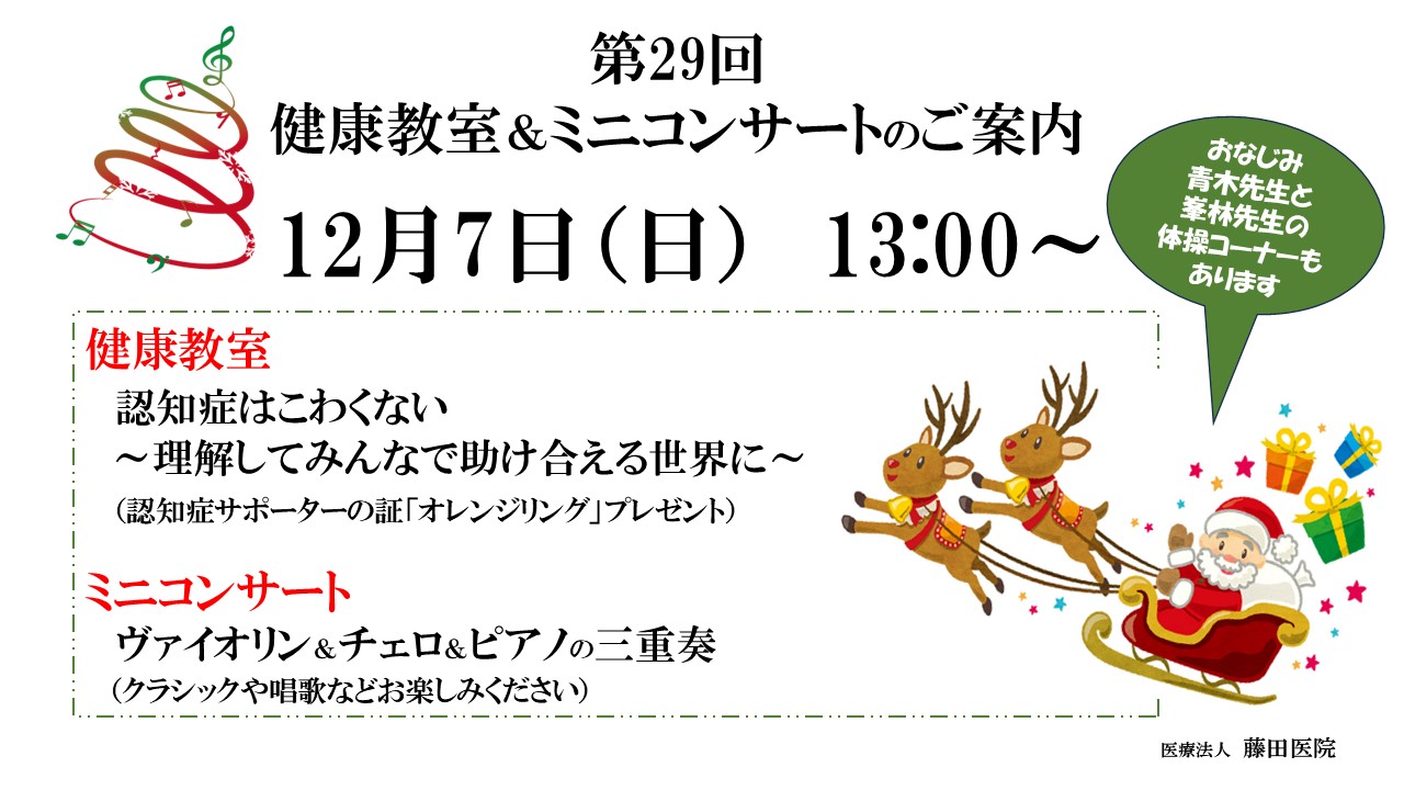 第29回健康教室&ミニコンサートのお知らせ