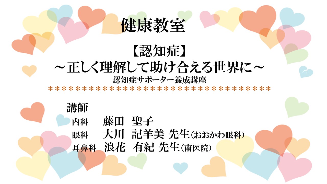 初の試みとして「認知症サポーター養成講座」を兼ねて、認知症をテーマにお話しをしました。